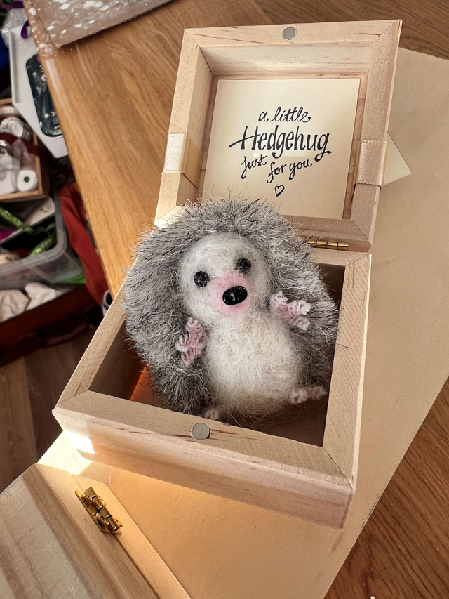 Handmade Needlefelt Hedgehog in small box... offering a special hug just for you